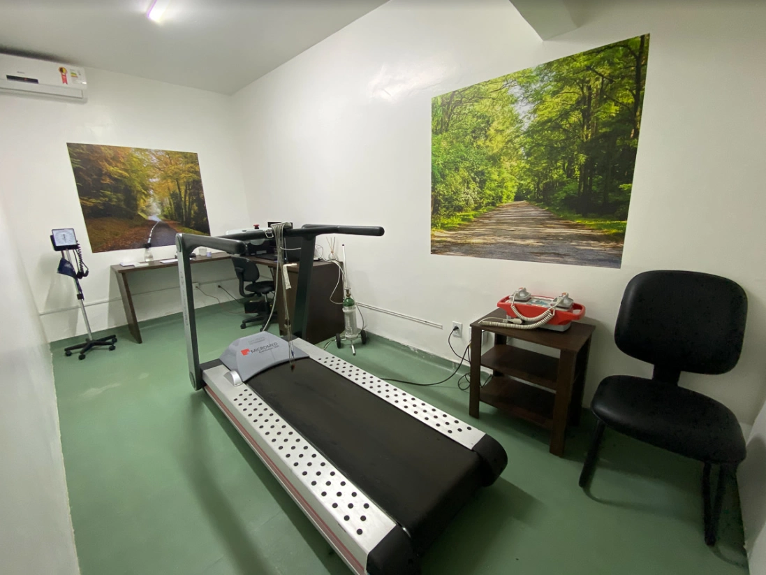 O Teste Ergométrico é realizado em uma esteira, eletrodos fixados no tórax do paciente para monitorar o eletrocardiograma durante o esforço e recuperação. Durante o Teste, também há o monitoramento ininterrupto da pressão arterial.